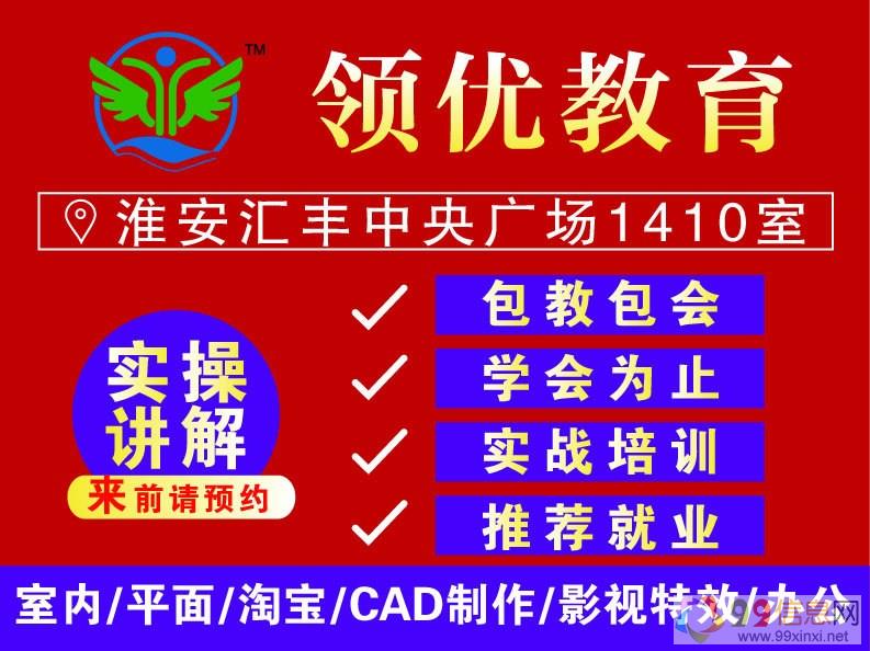 在这里你能学到扎实的技能,实践与软件相结合,让你学以致用来源www.99xinxi.net。想学设计的、改变自己前途的、来领优我们一起来改变!